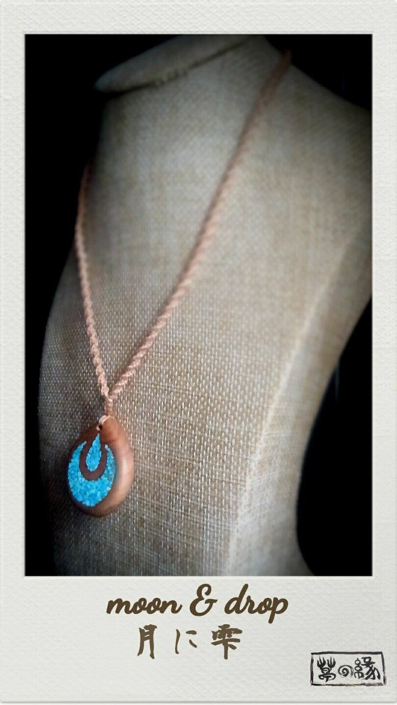 滴と波紋の部分には細かく砕いた天然石のターコイズを木に埋め込み模様を作り出してあります。