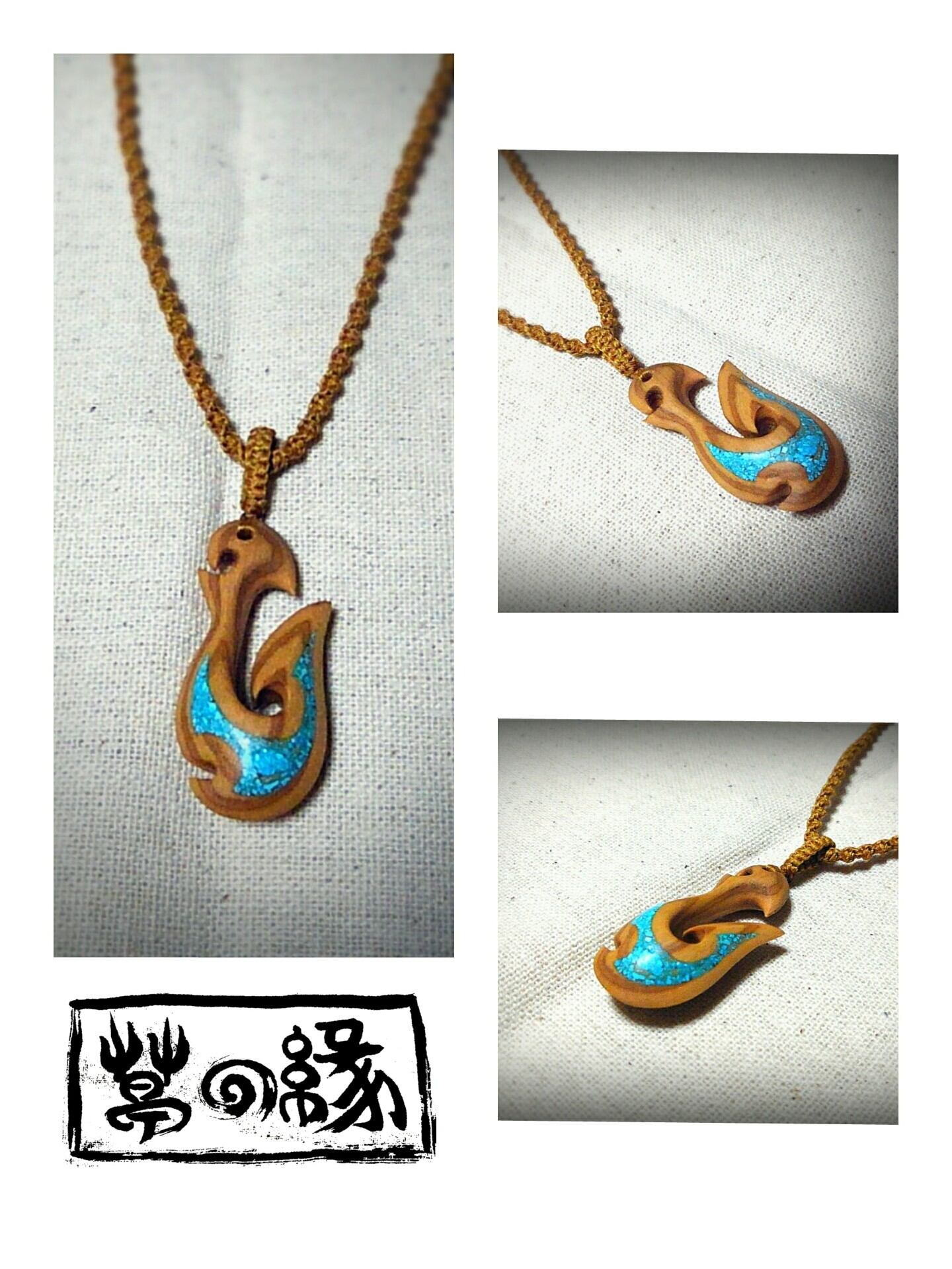 またオリーブの木材にワンポイントとしてターコイズの天然石を象篏細工で埋め込んであります。